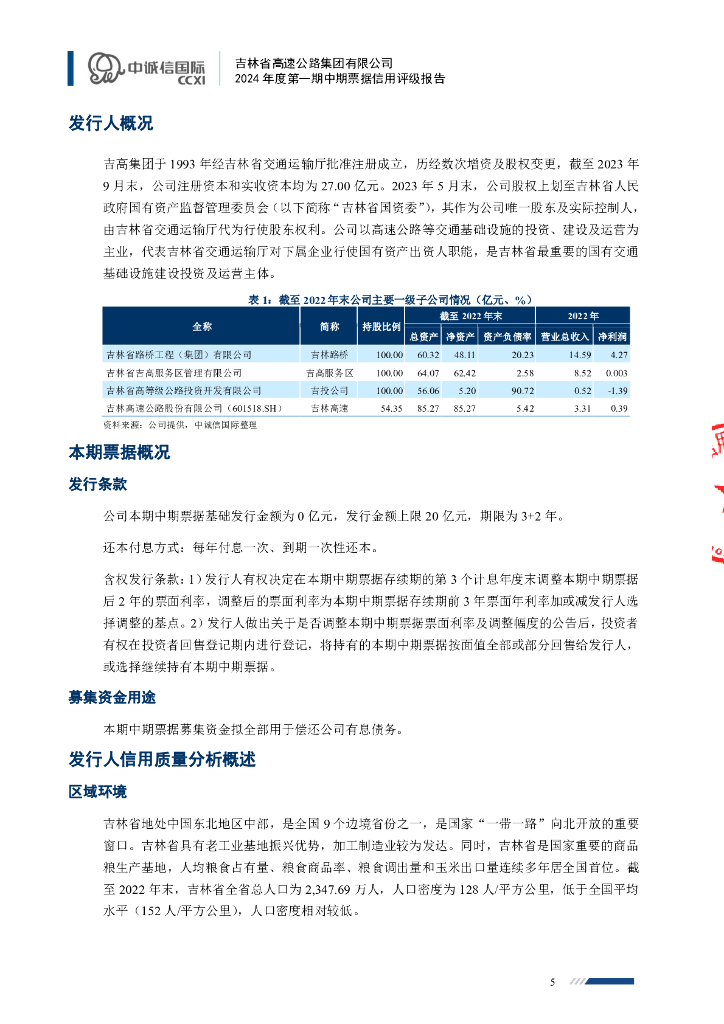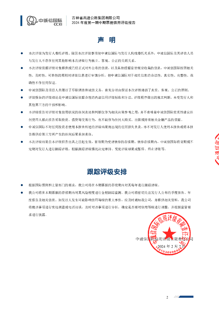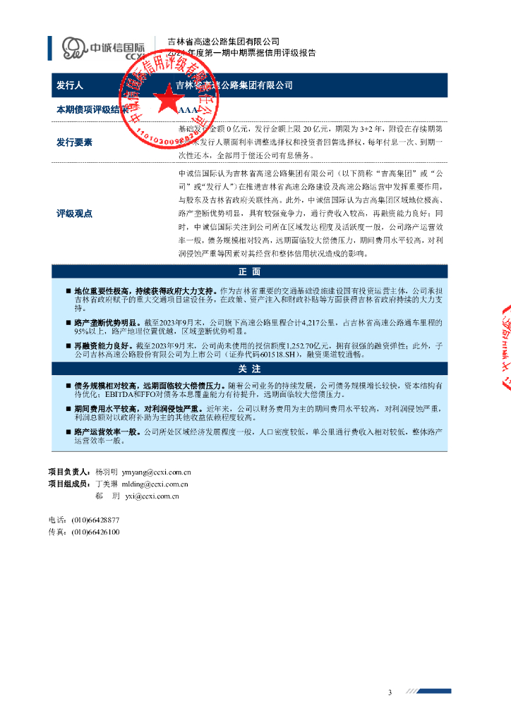 中诚信:吉林省高速公路集团有限公司2024年度第一期中期票据信用评级报告.pdf