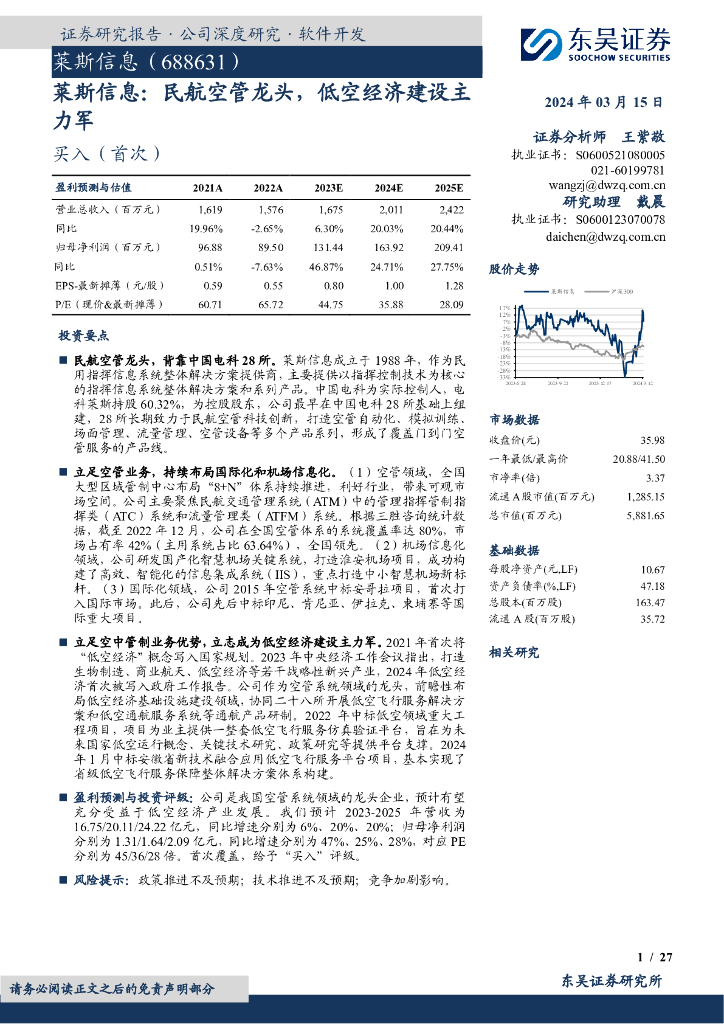 东吴证券:莱斯信息:民航空管龙头,低空经济建设主力军.pdf