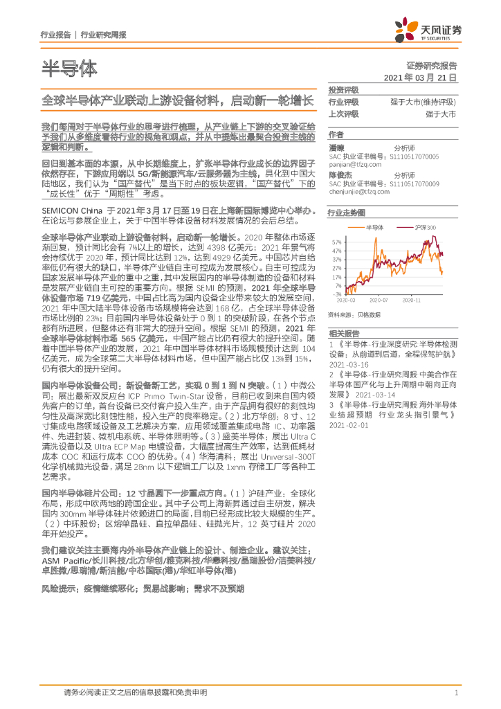 天风证券:半导体行业研究周报:全球半导体产业联动上游设备材料,启动新一轮增长.pdf