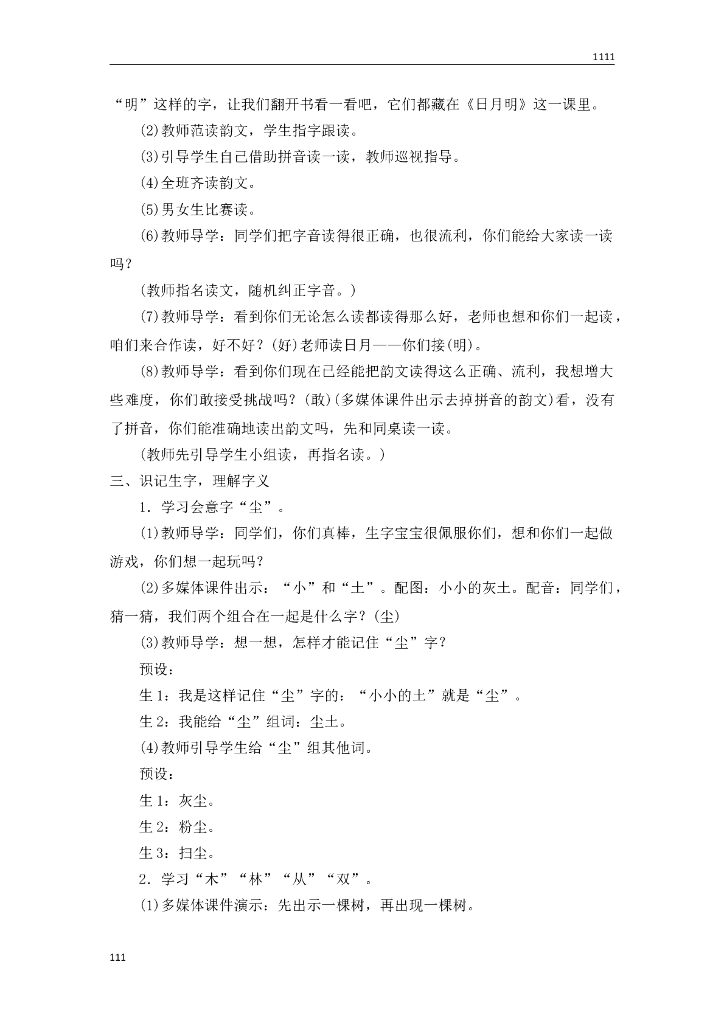 一年级语文(教案2)识字9 日月明教学设计.doc