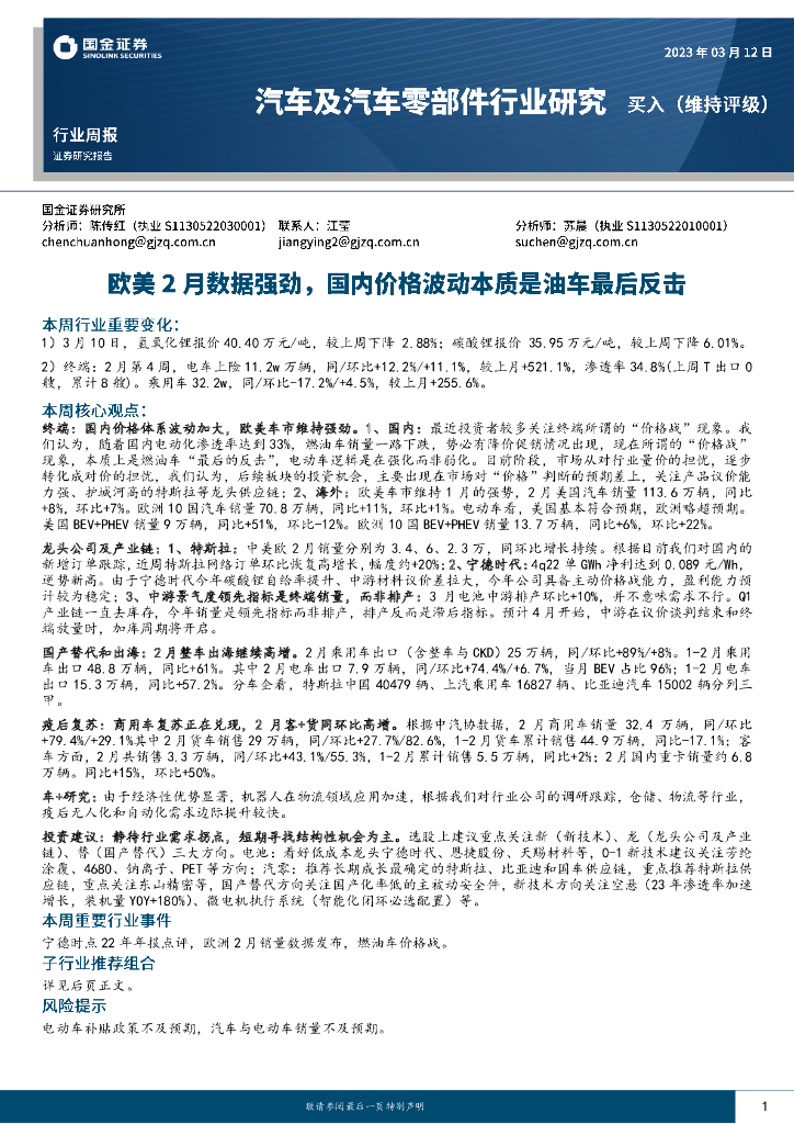 国金证券:汽车及汽车零部件行业研究:欧美2月数据强劲,国内价格波动本质是油车最后反击.pdf