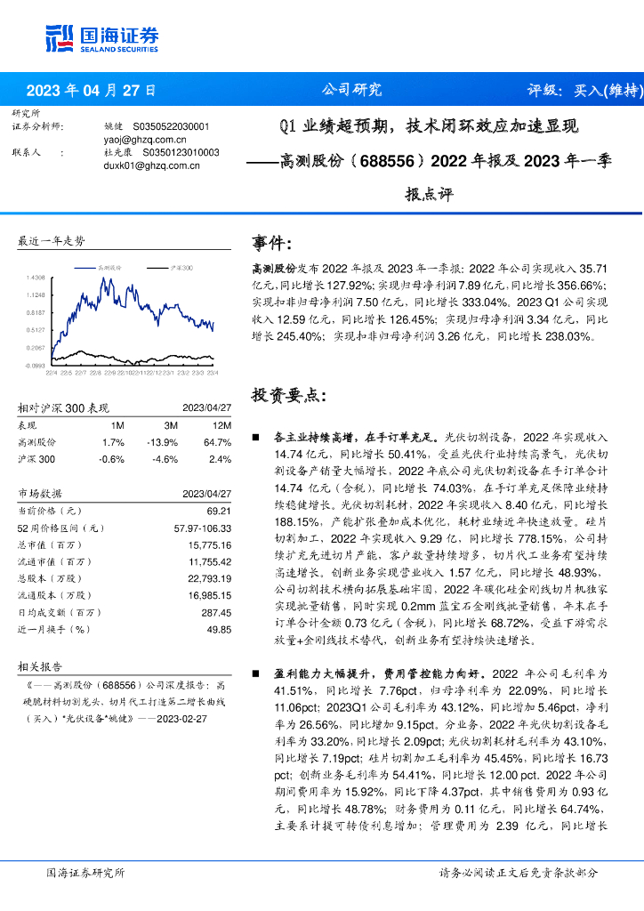 国海证券:高测股份(688556)-2022年报及2023年一季报点评:Q1业绩超预期,技术闭环效应加速显现.pdf