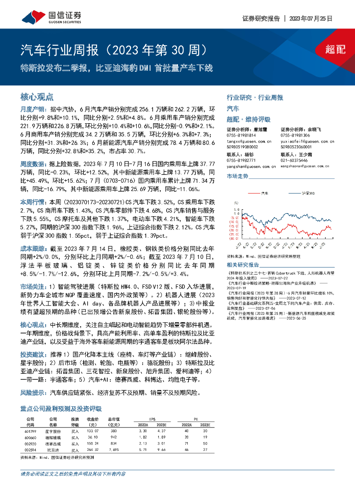 国信证券:汽车行业周报(2023年第30周):特斯拉发布二季报,比亚迪海豹DMI首批量产车下线.pdf