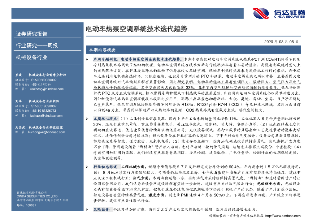 信达证券:机械设备行业周报:电动车热泵空调系统技术迭代趋势.pdf