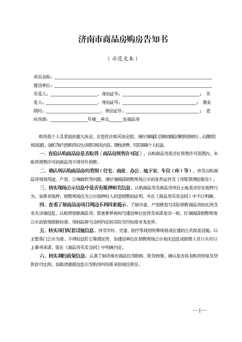 济南市商品房购房告知书(示范文本).pdf