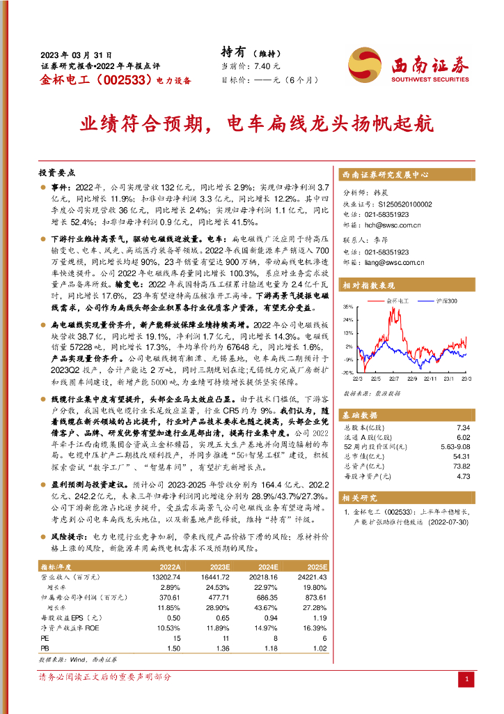 西南证券:金杯电工(002533)-业绩符合预期,电车扁线龙头扬帆起航.pdf