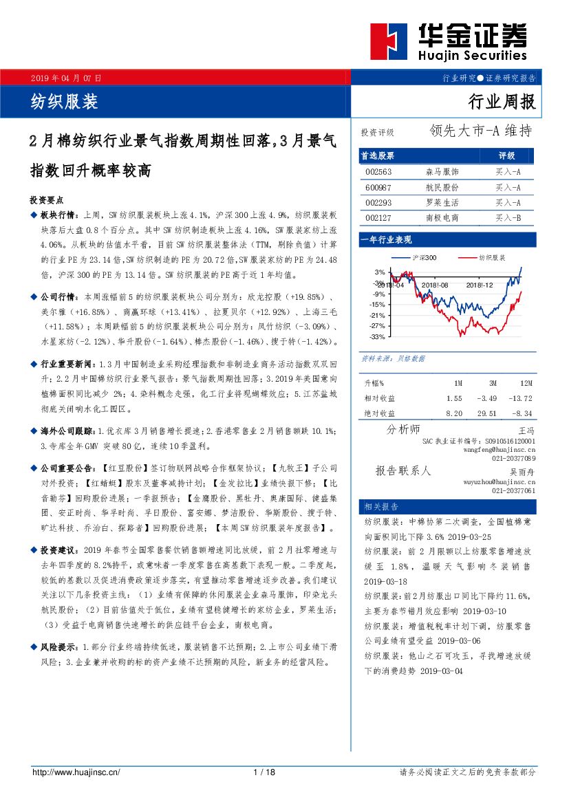 华金证券:纺织服装行业周报:2月棉纺织行业景气指数周期性回落,3月景气指数回升概率较高.pdf