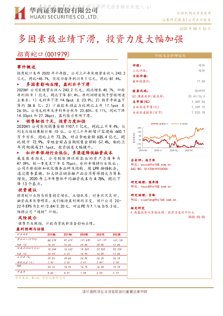 华西证券:招商蛇口(001979)-多因素致业绩下滑,投资力度大幅加强.pdf