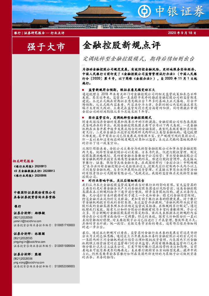 中银证券:金融控股新规点评:定调纯粹型金融控股模式,期待后续细则出台.pdf