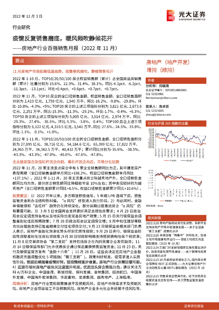 光大证券:房地产行业百强销售月报(2022年11月):疫情反复销售磨底,暖风频吹静候花开.pdf