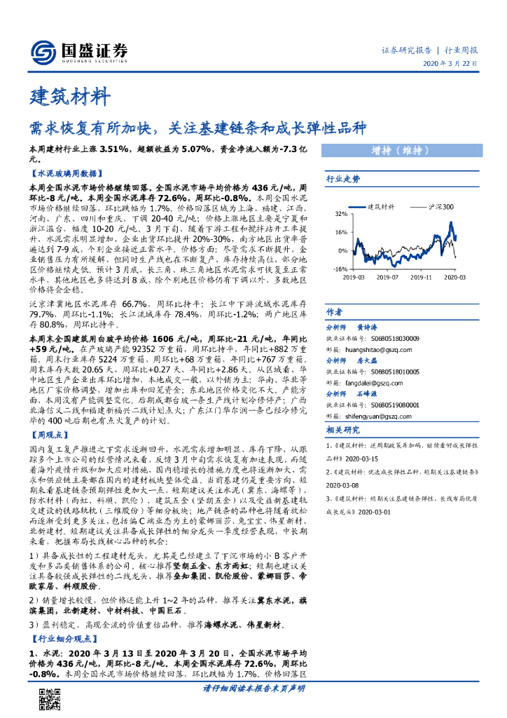 国盛证券:建筑材料行业周报:需求恢复有所加快,关注基建链条和成长弹性品种.pdf