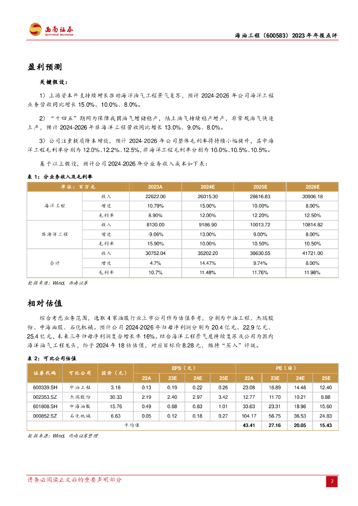 西南证券:海油工程(600583)-2023年年报点评:受益于海洋油气高景气,业绩实现稳健增长.pdf