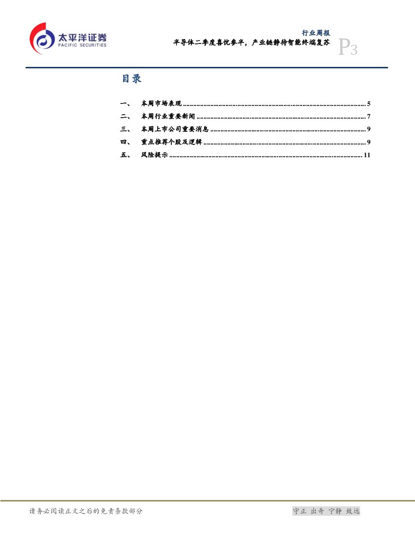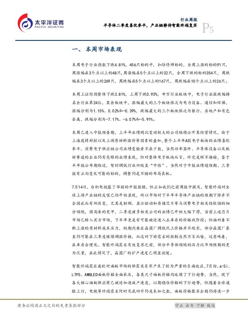 太平洋证券:电子行业周报:半导体二季度喜忧参半,产业链静待智能终端复苏.pdf