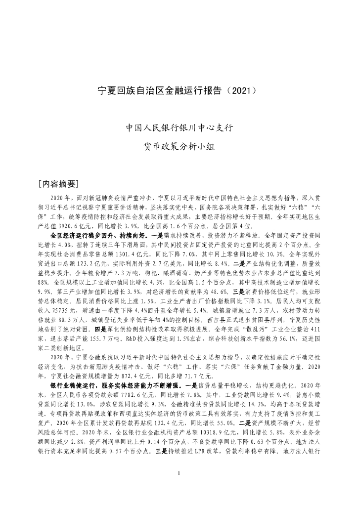 中国人民银行:宁夏回族自治区金融运行报告(2021).pdf