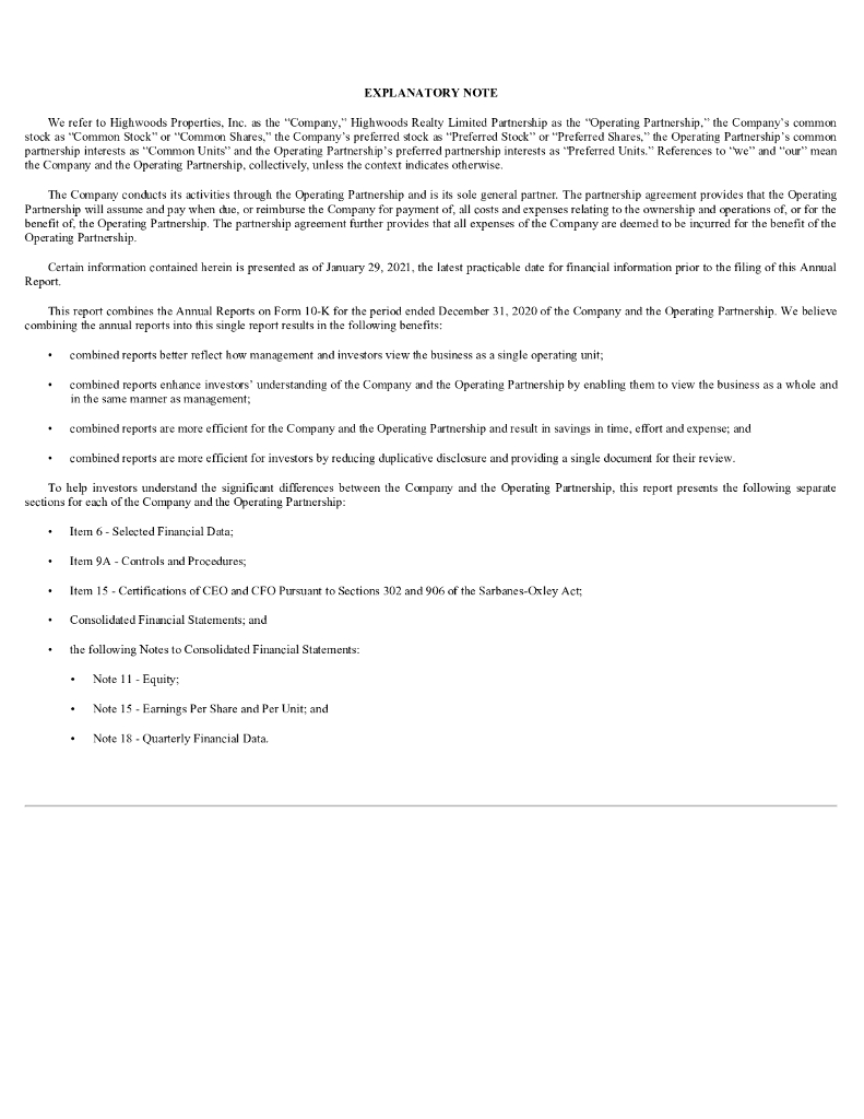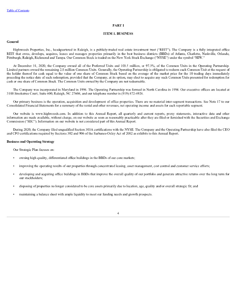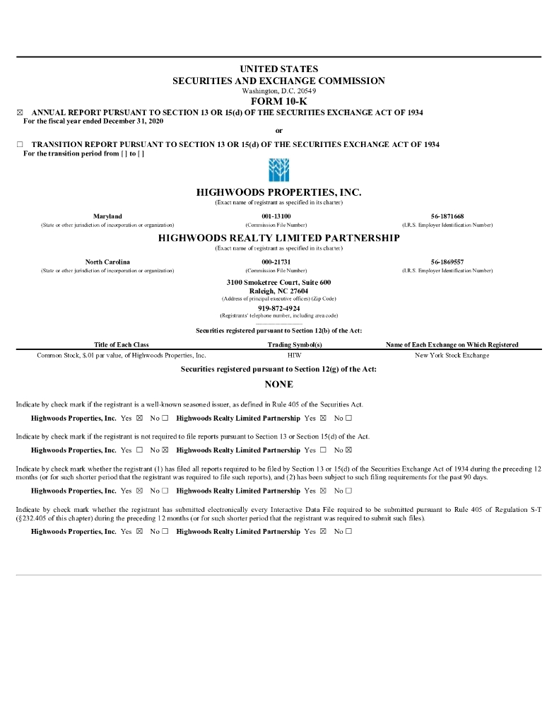 Highwoods Properties Inc(HIW)2020财年年度报告(英文版).pdf