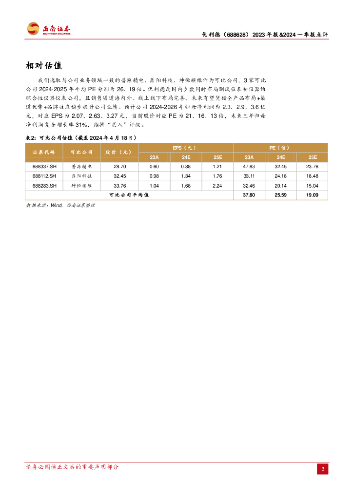 西南证券:优利德(688628)-24Q1业绩高增长,盈利能力再提升.pdf