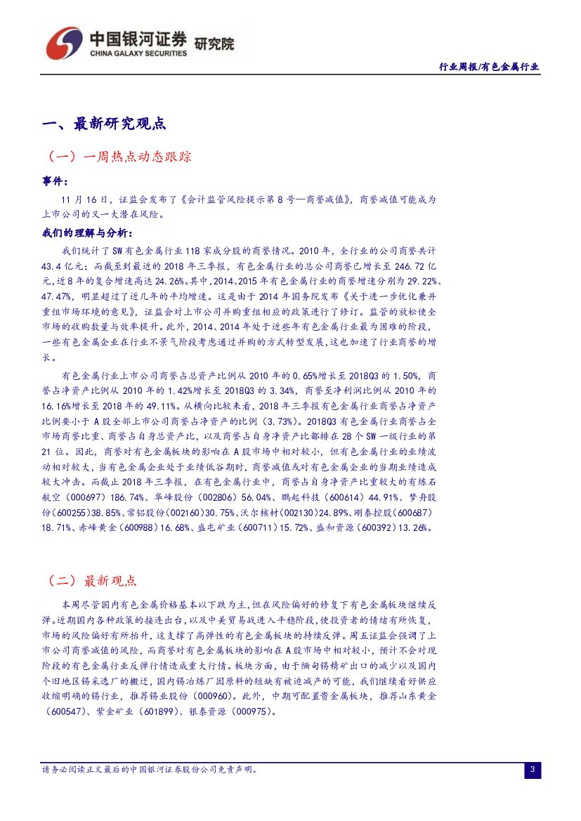 中国银河:有色金属行业周报:商誉对有色金属行业影响较小,板块反弹继续重点推荐锡.pdf