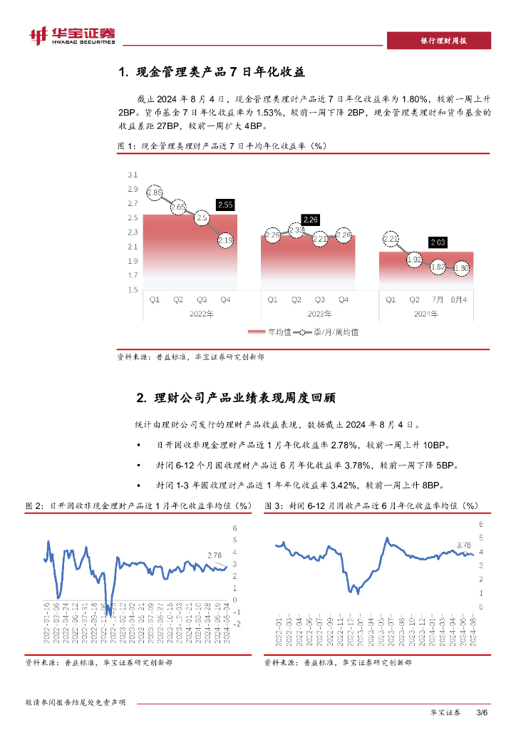 华宝证券:银行理财产品周数据:现金管理类理财产品近7日年化收益率1.80%.pdf
