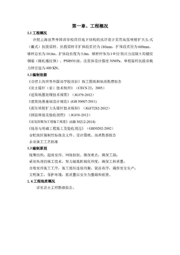 扩大头式囊式扩体抗浮锚杆施工方案(17页).doc
