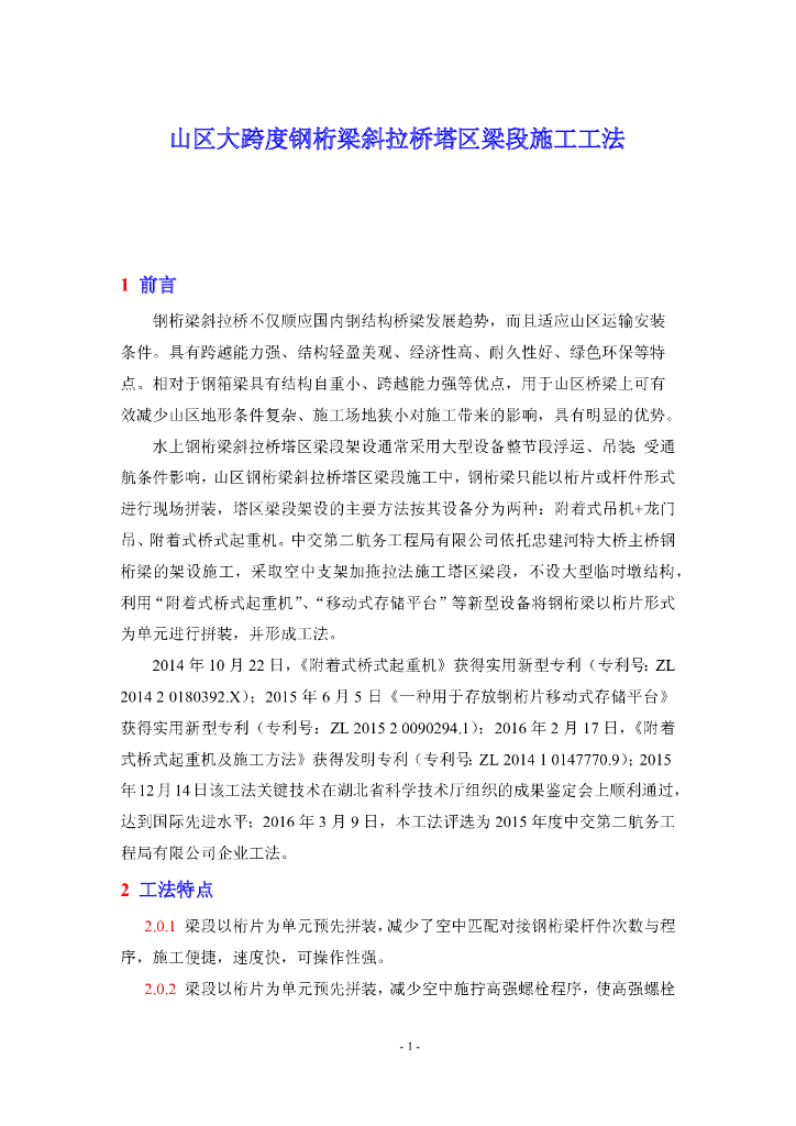 山区大跨度钢桁梁斜拉桥塔区梁段施工工法.pdf