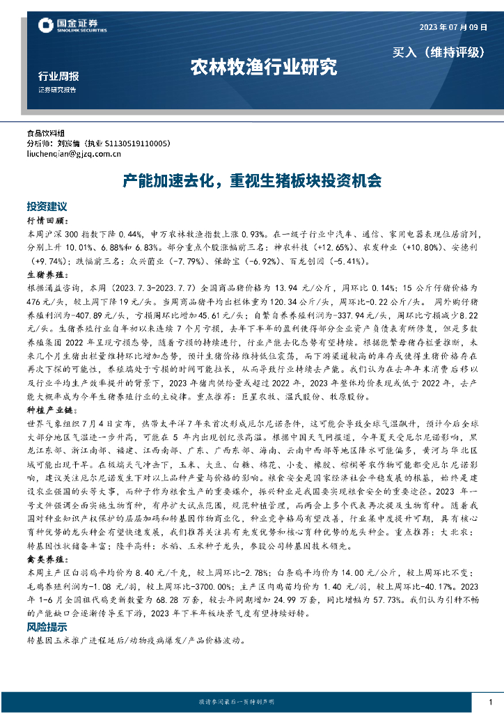 国金证券:农林牧渔行业研究:产能加速去化,重视生猪板块投资机会.pdf
