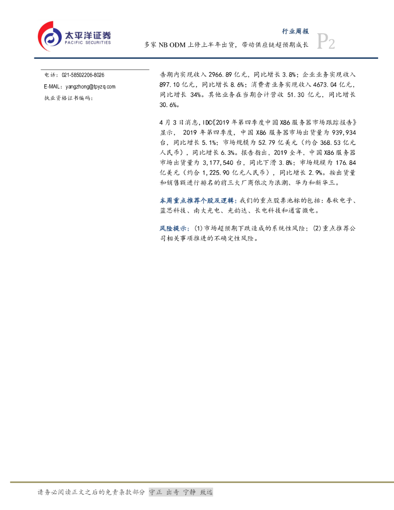 太平洋证券:电子设备、仪器和元件行业周报:多家NB ODM上修上半年出货,带动供应链超预期成长.pdf