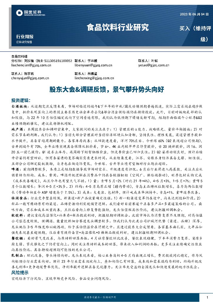 国金证券:食品饮料行业研究:股东大会&调研反馈,景气攀升势头向好.pdf