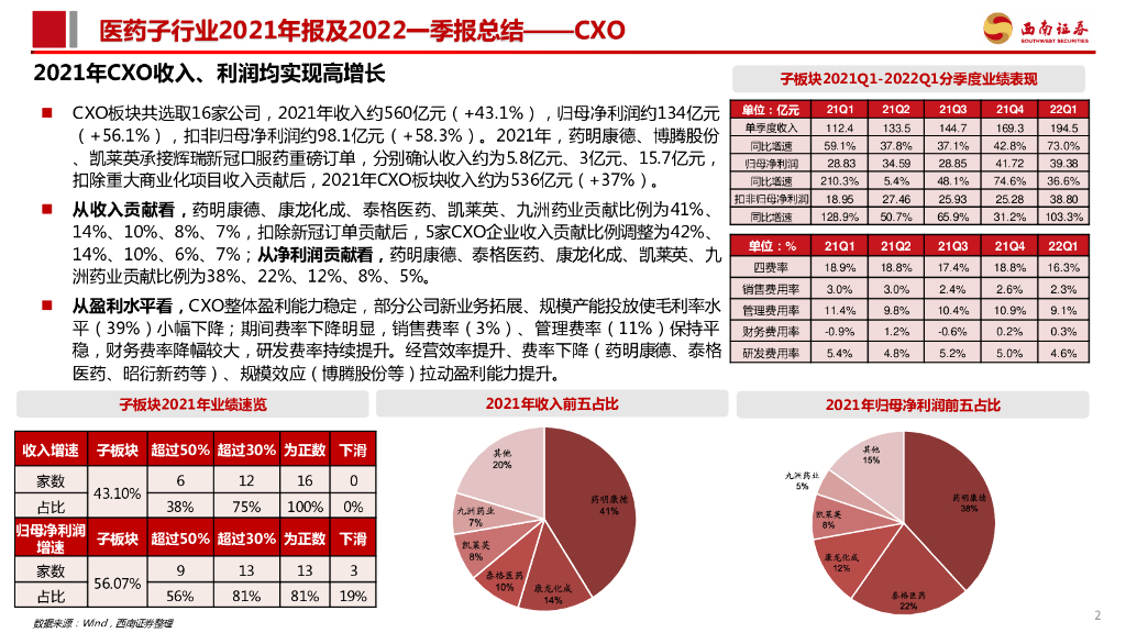 西南证券:医药:CXO板块2021年报及2022Q1季报总结:行业高景气度持续,业绩进入高速兑现期.pdf