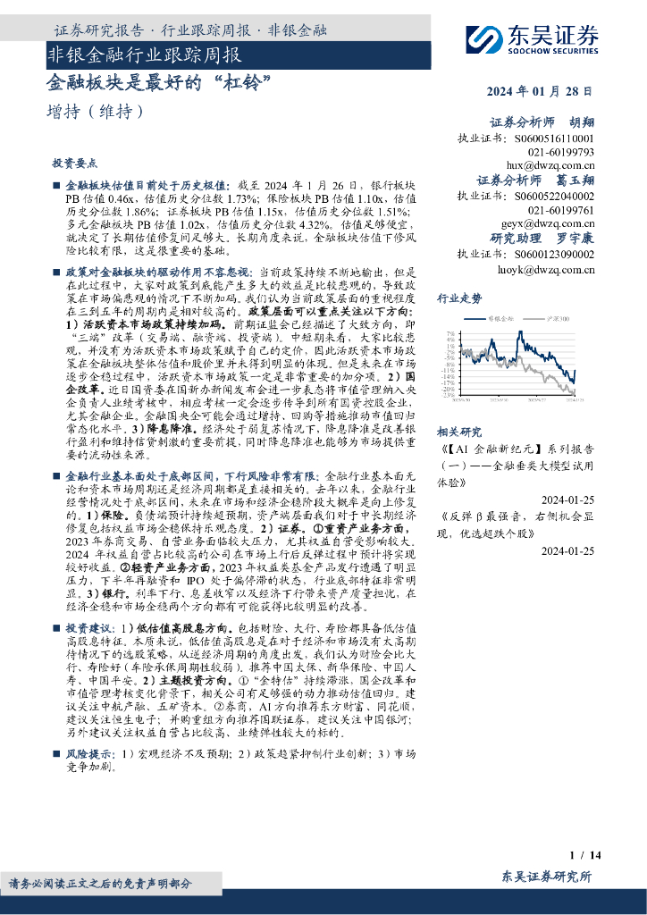 东吴证券:证券研究报告·行业跟踪周报·非银金融:非银金融行业跟踪周报金融板块是最好的“杠铃”.pdf