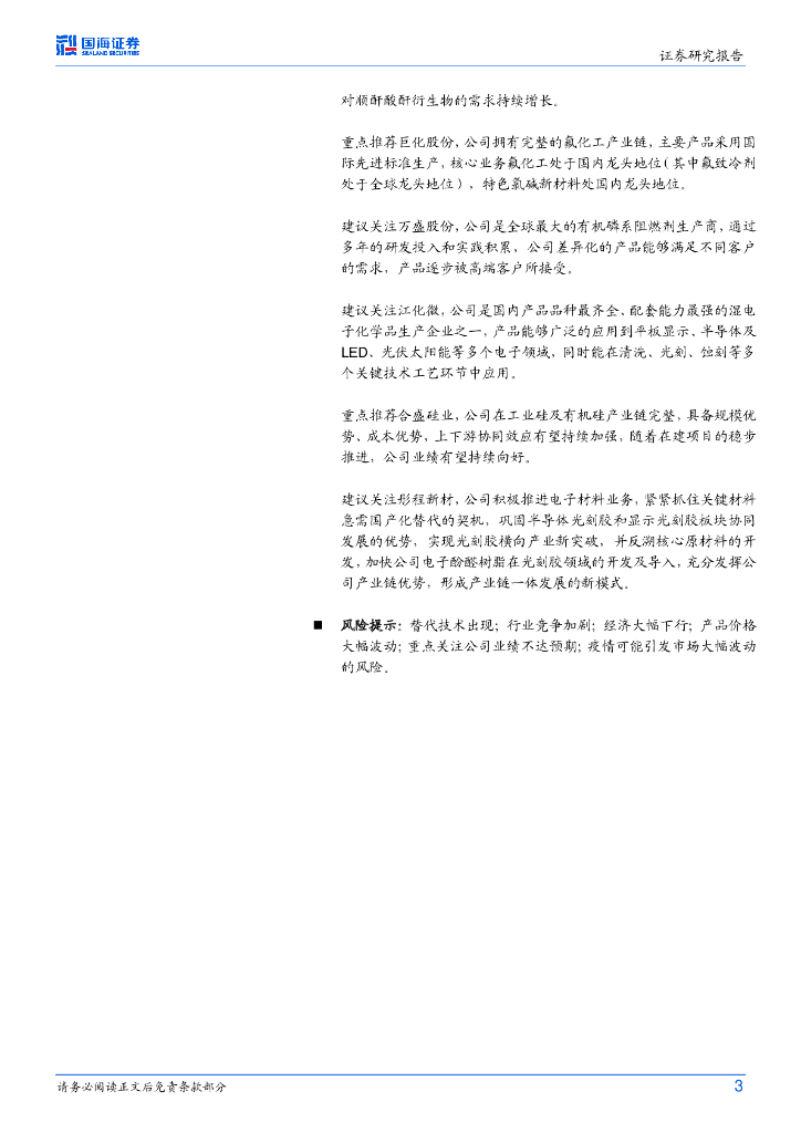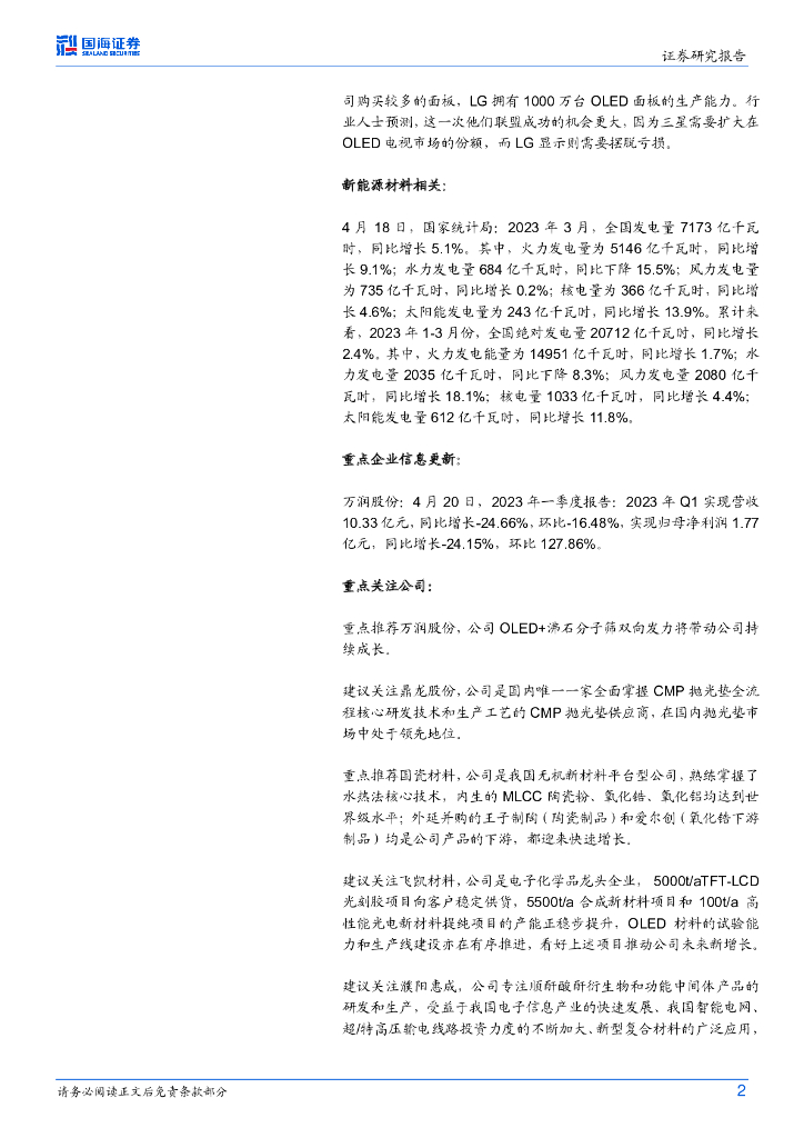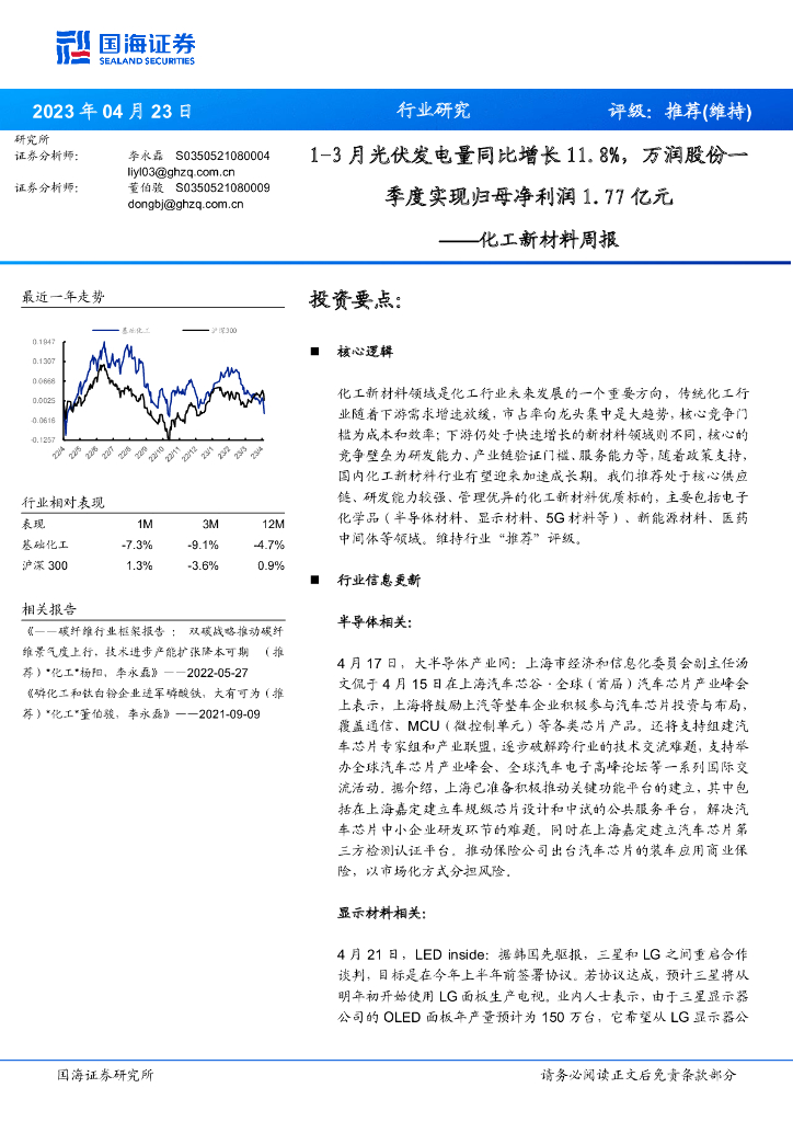 国海证券:化工新材料周报:1-3月光伏发电量同比增长11.8%,万润股份一季度实现归母净利润1.77亿元.pdf