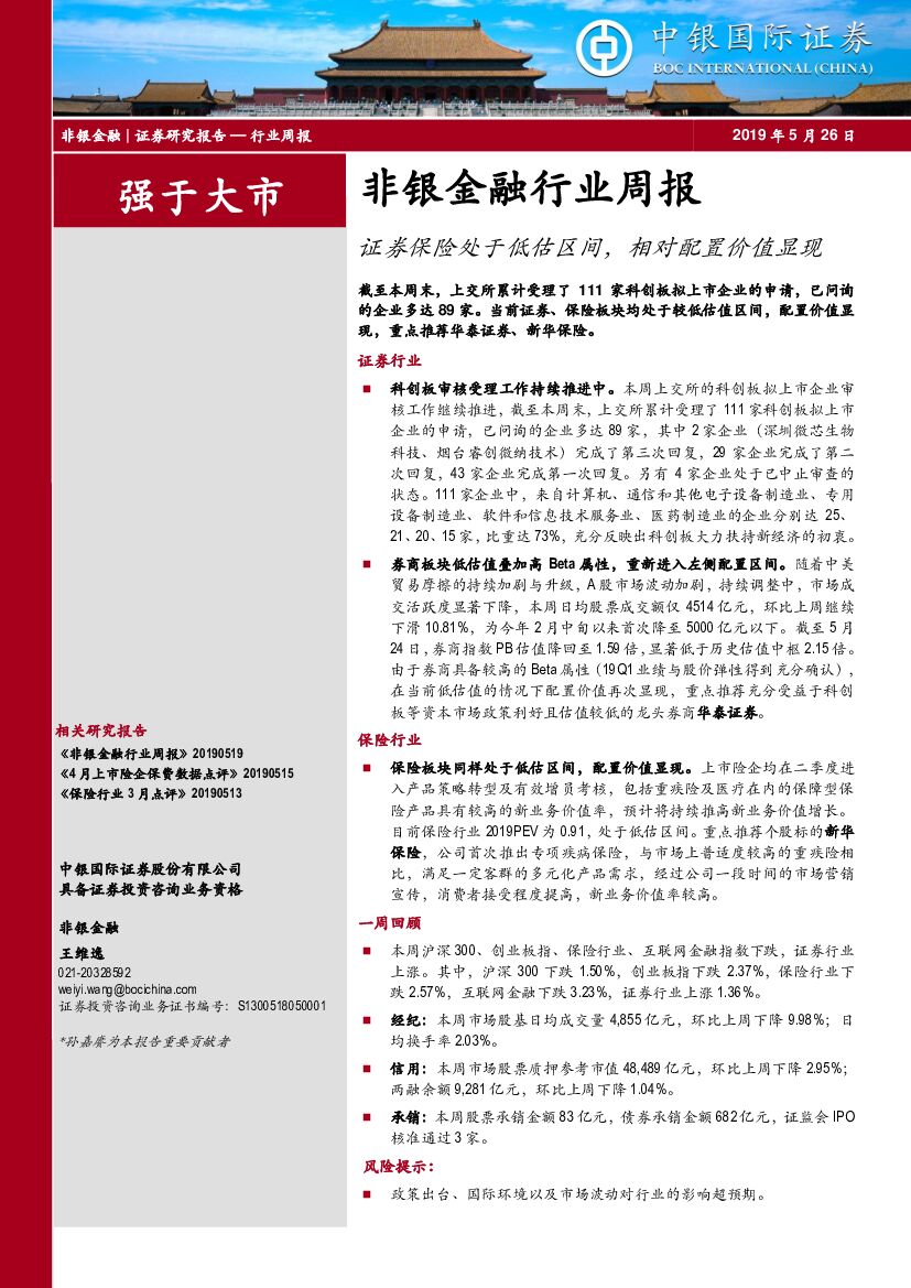 中银国际:非银金融行业周报:证券保险处于低估区间,相对配置价值显现.pdf