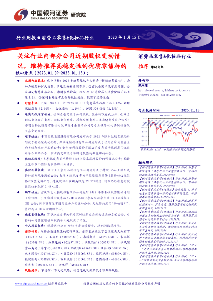 中国银河:消费品零售&化妆品行业周报:关注行业内部分公司近期股权变动情况,维持推荐高稳定性的优质零售标的.pdf