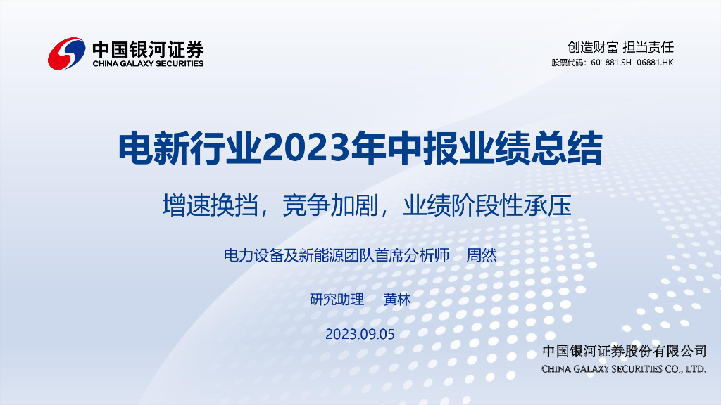 中国银河:电新行业2023年中报业绩总结:增速换挡,竞争加剧,业绩阶段性承压.pdf