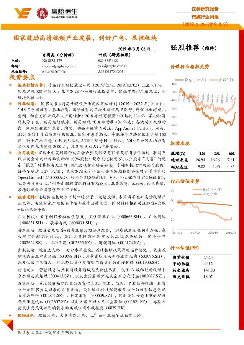 广证恒生证券研究所:传媒行业周报:国家鼓励高清视频产业发展,利好广电、显控板块.pdf