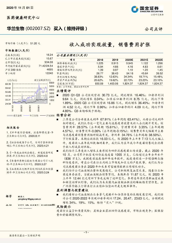 国金证券:华兰生物(002007)-收入成功实现放量,销售费用扩张.pdf