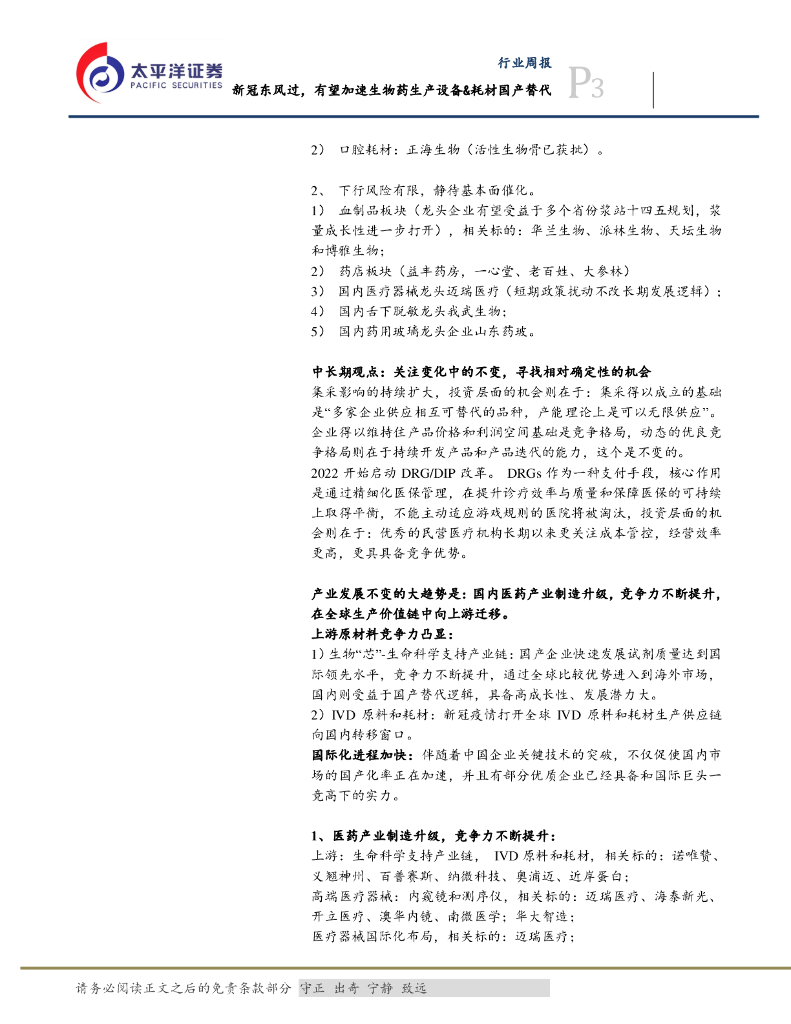 太平洋证券:医药行业周报:新冠东风过,有望加速生物药生产设备&耗材国产替代.pdf
