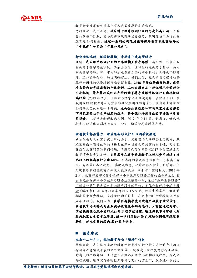 上海证券:教育行业动态研究:全国性K12课外培训整顿大幕开启,龙头长期受益推动市场集中度提升.pdf