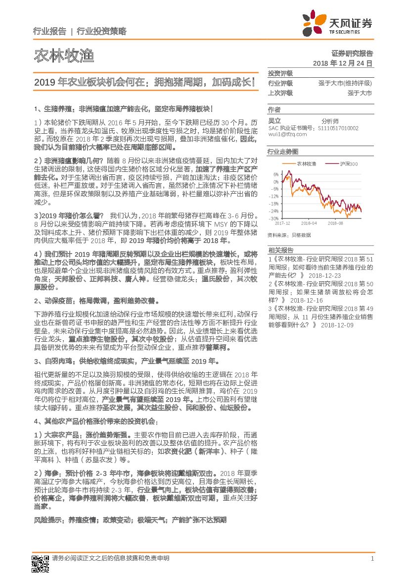 天风证券:2019年农业板块机会何在:拥抱猪周期,加码成长!.pdf