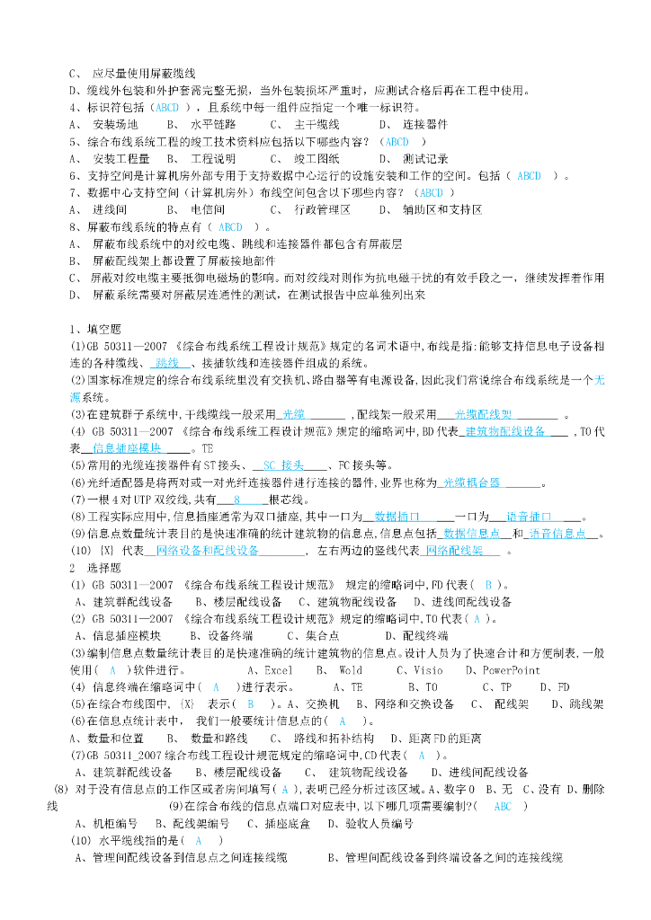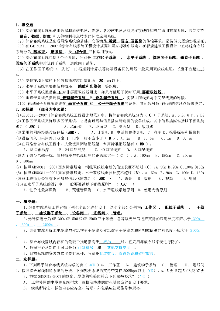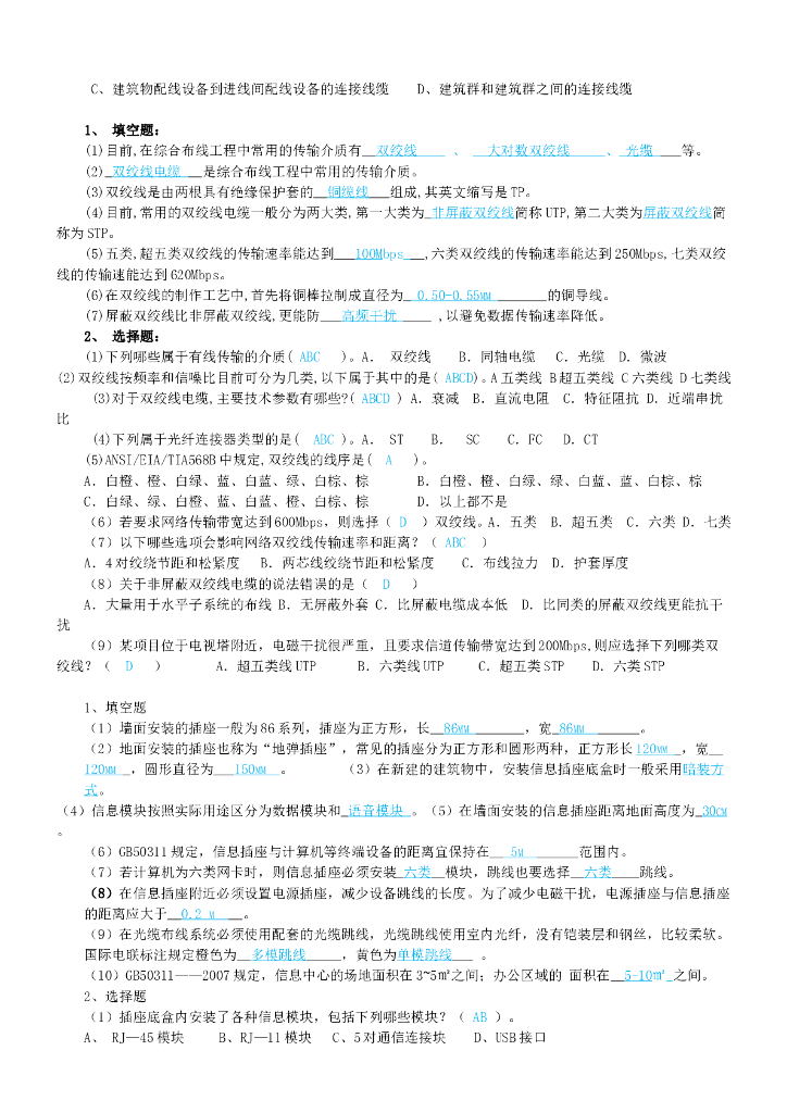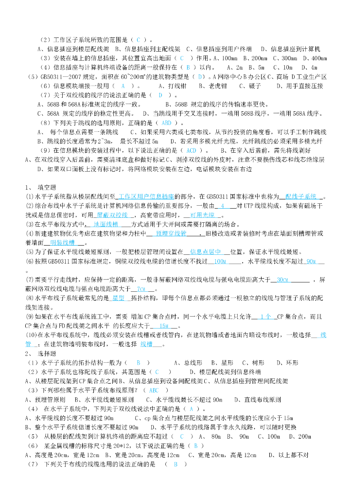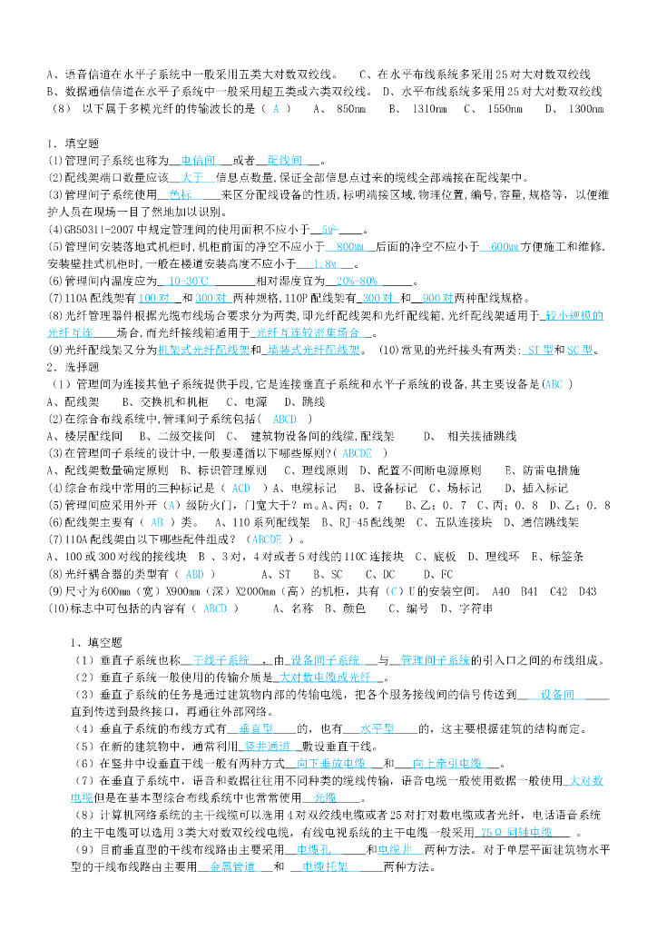 综合布线试题集锦.doc