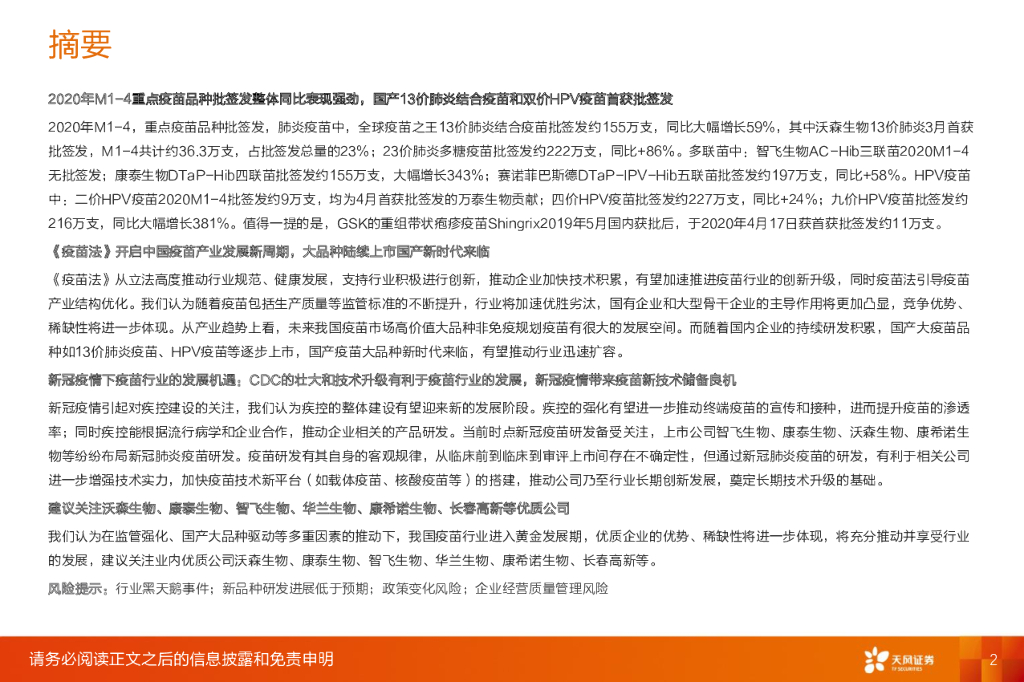 天风证券:2020年M1-M4疫苗批签发报告:重点疫苗品种批签发整体同比表现强劲,国产大品种时代开启.pdf