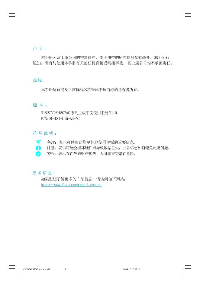 富士康 915P7AC/915G7AC 系列主板 中文使用手册V1.0.pdf