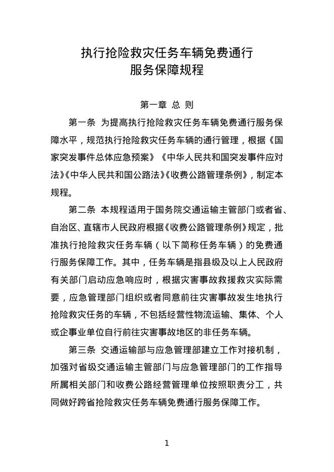 执行抢险救灾任务车辆免费通行服务保障规程.doc