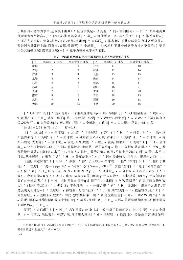 中国城市体系的层级结构与城市群发展——基于城市全球竞争力、全球联系度及辐射能力的分析.pdf