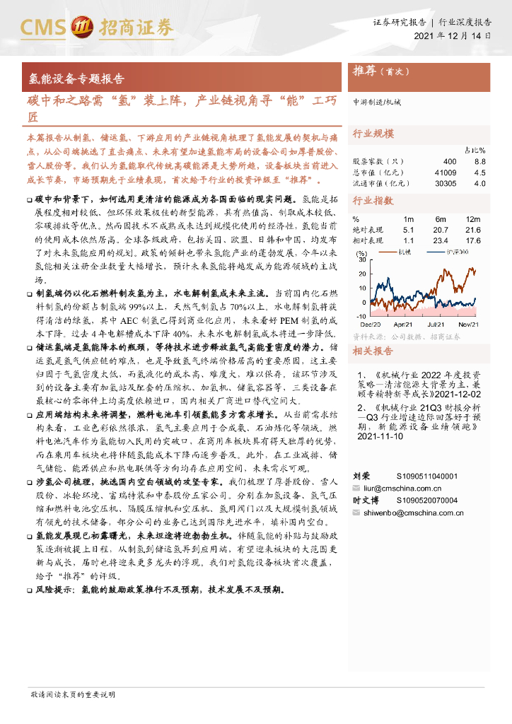 招商证券:氢能设备专题报告:碳中和之路需“氢”装上阵,产业链视角寻“能”工巧匠.pdf