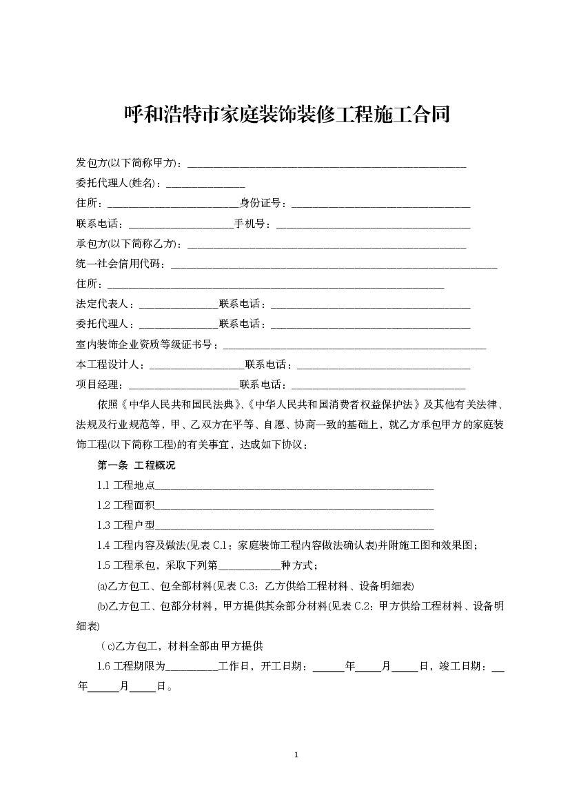 呼和浩特市家庭装饰装修工程施工合同(示范文本).pdf