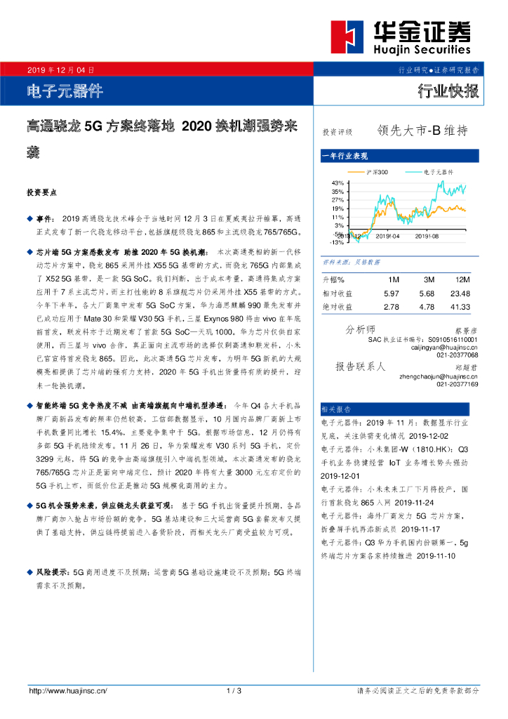 华金证券:电子元器件行业快报:高通骁龙5G方案终落地 2020换机潮强势来袭.pdf