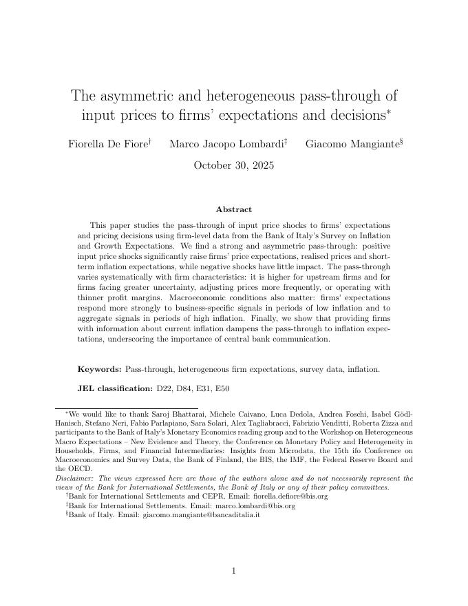 国际清算银行:投入价格对企业预期和决策的不对称和异质传递(英文版).pdf
