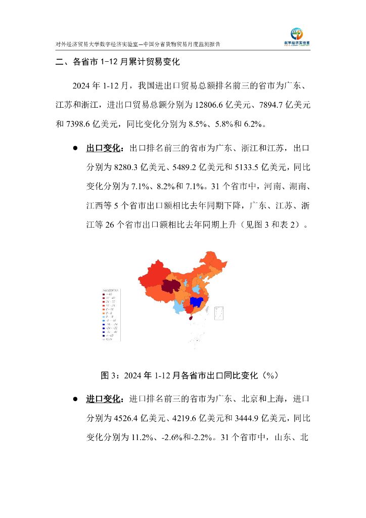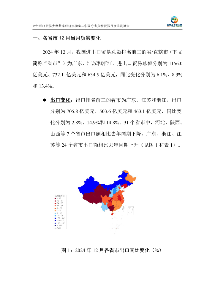 对外经济贸易大学:中国分省货物贸易月度监测报告(2024年1-12月).pdf