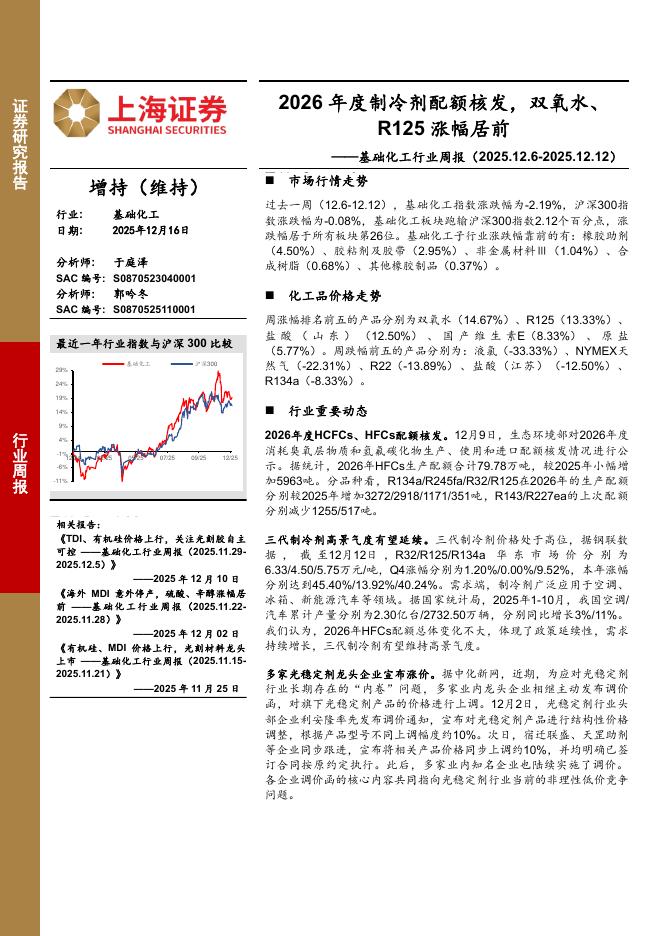 上海证券:基础化工行业周报:2026年度制冷剂配额核发,双氧水、R125涨幅居前.pdf