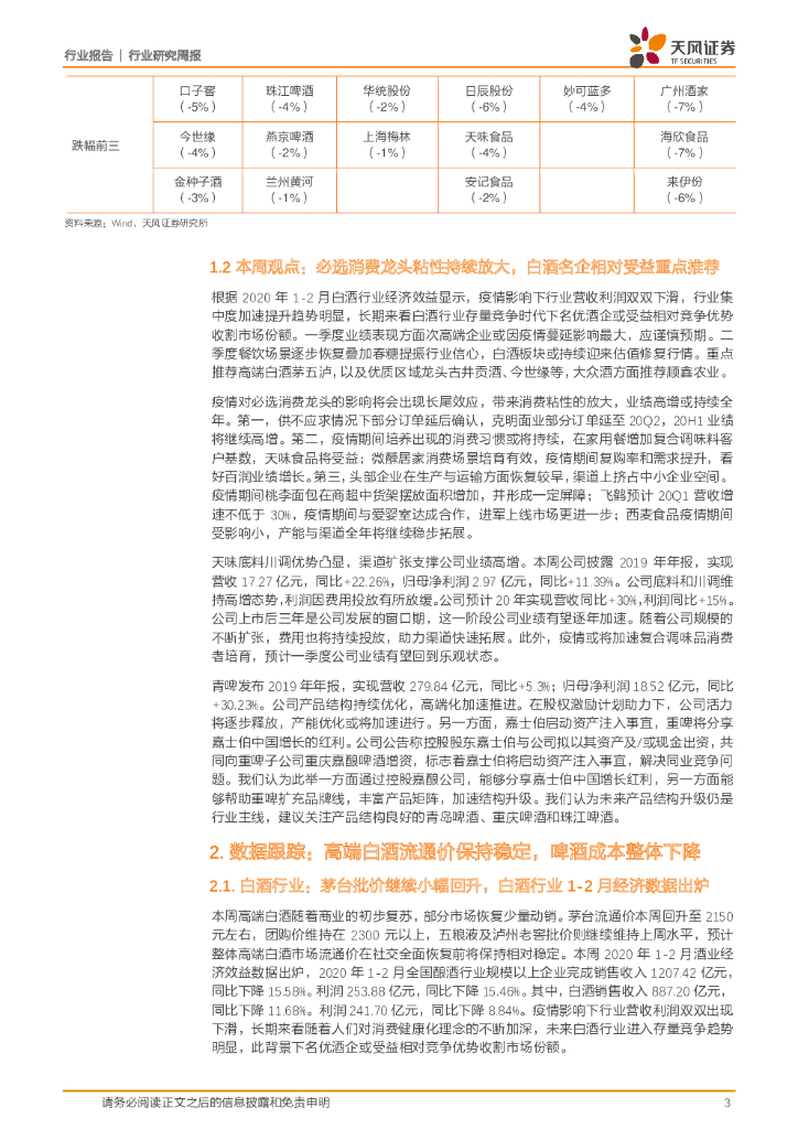 天风证券:食品饮料行业研究周报:必选消费龙头粘性持续放大,白酒名企相对受益重点推荐.pdf